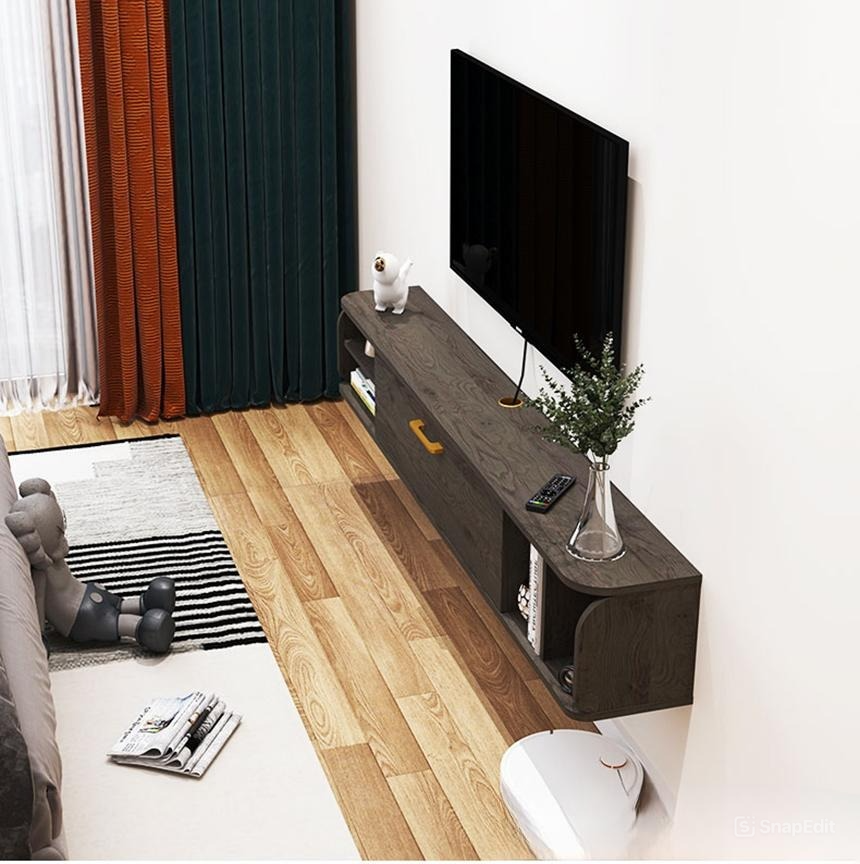 Kệ tivi được thiết kế dạng treo tường giúp tối ưu diện tích, đặc biệt phù hợp với các căn hộ chung cư, nhà phố có diện tích khiêm tốn. Với kiểu dáng tinh gọn, kệ không chỉ giúp sắp xếp đồ đạc gọn gàng mà còn tạo điểm nhấn sang trọng cho phòng khách.