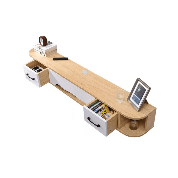 Việc bo tròn ở các góc không chỉ giúp tổng thể kệ trở nên mềm mại mà còn đảm bảo an toàn khi gia đình có trẻ nhỏ. Chất liệu MDF đã qua xử lý kỹ càng, hạn chế mùi khó chịu, an toàn cho sức khỏe người dùng. Hơn nữa, bề mặt kệ phẳng mịn, không bám bụi nhiều, rất thuận tiện trong việc vệ sinh. Bạn có thể kết hợp thêm một vài phụ kiện trang trí như bình hoa nhỏ, khung ảnh hoặc đèn LED để tăng thêm sự lung linh, tạo nên góc giải trí hoàn hảo cho gia đình.