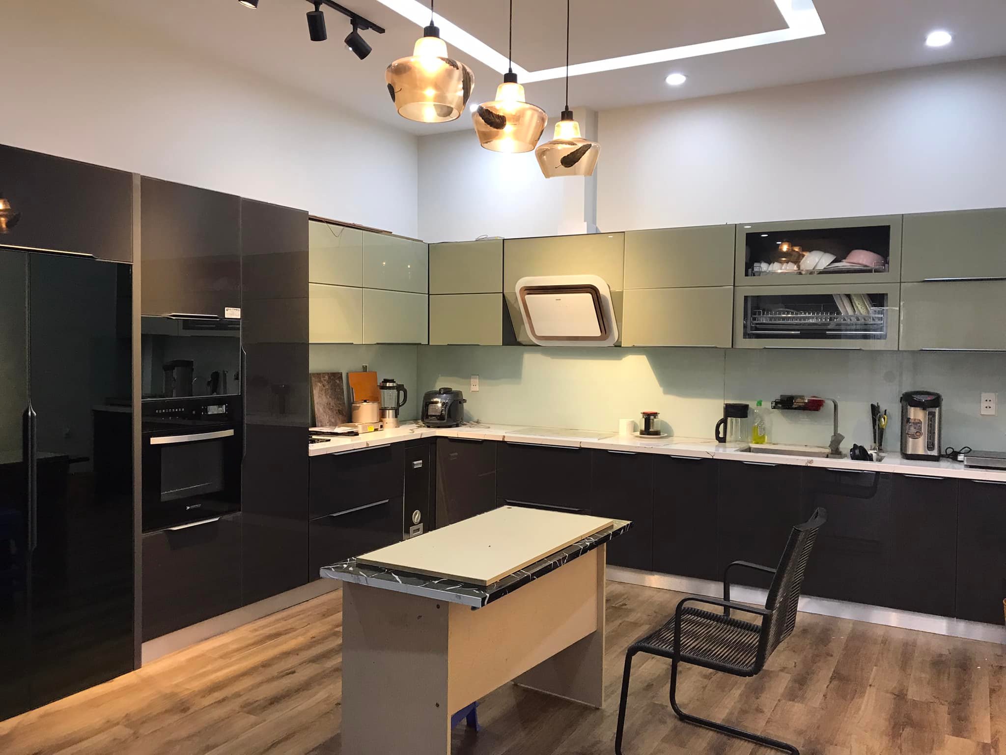 Thiết kế tủ bếp không tay nắm, cánh phẳng mang vẻ đẹp tối giản, sang trọng