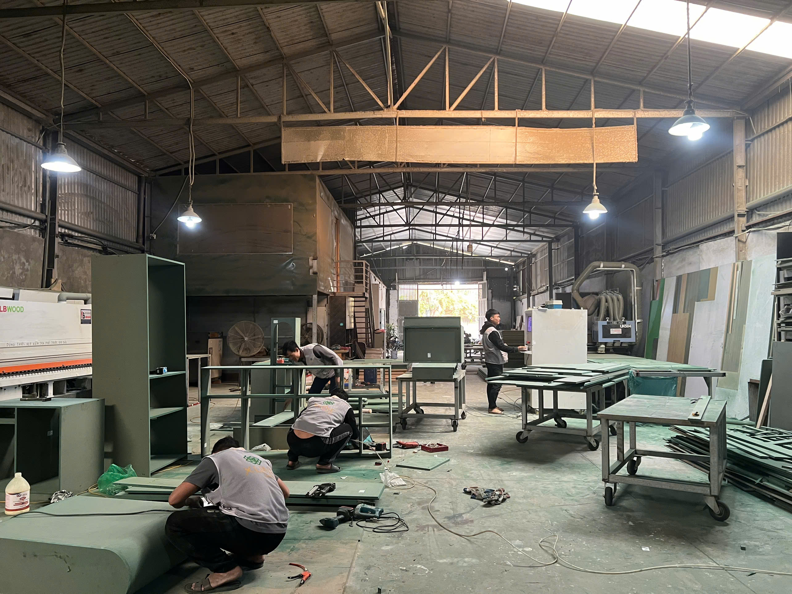 Xưởng sản xuất nội thất XLINE sở hữu nhà máy hiện đại với diện tích rộng lớn, được trang bị hệ thống máy móc tiên tiến, đáp ứng nhu cầu sản xuất hàng loạt cũng như các đơn hàng nội thất theo yêu cầu riêng. Nhà máy của chúng tôi bao gồm: